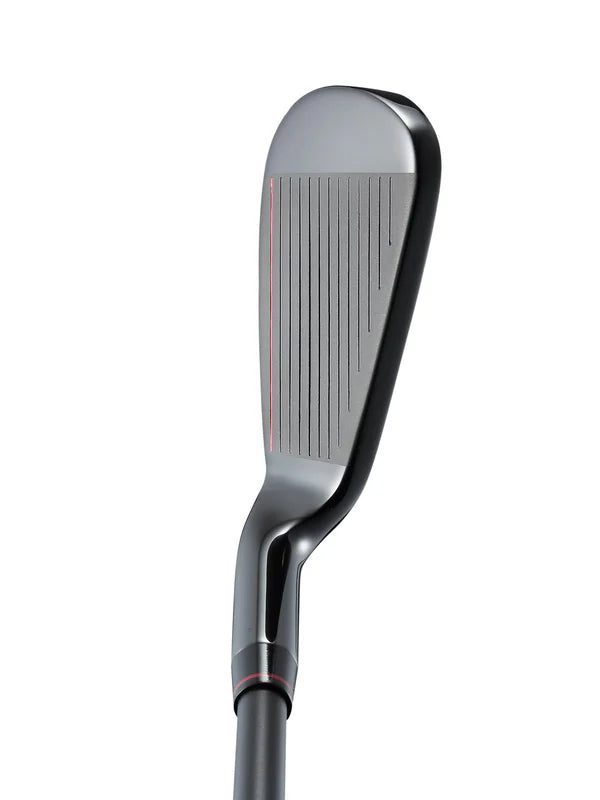 Packed with features that promote accuracy, forgiveness and control, the V MAX irons take game improvement to the next level. Featuring an enclosed cavity back, high MOI and low centre of gravity the V MAX irons assist with launch and forgiveness, while Kinetic Sole technology uses evenly spaced grooves to promote a smooth transfer of energy from club to ball even on imperfect strikes. Dynamic flex on the thin club face delivers increased distance while retaining a soft feel and playability not often seen in irons with this level of forgiveness. Accented colours feature on the back of the club and follow through with subtle detailing on the toe and lower most groove. A traditional top line inspires confidence at address and completes the impressive features that set these superb game improvement irons apart from the competition.